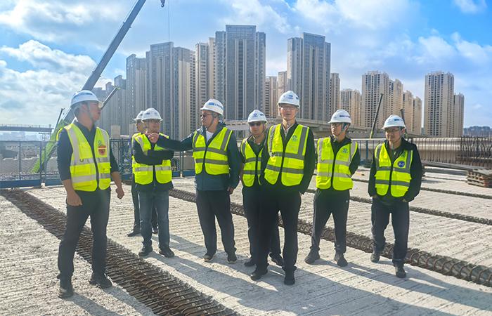 仲金榮一行深入施工現(xiàn)場,實地檢查項目安全生產(chǎn)、工程質(zhì)量、建設進度及文明施工等情況,詳細了解項目建設進展、剩余工程量、進度計劃,以及項目推進中亟待解決的困難和問題,并提出指導意見及建議。