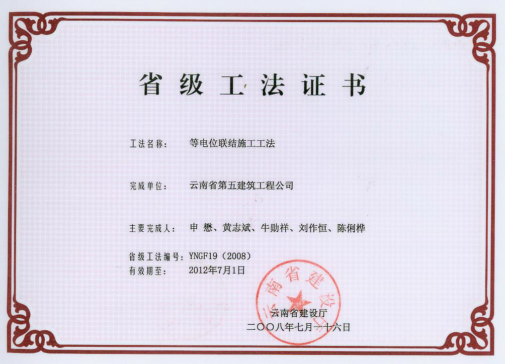 云南五建編制的省級(jí)工法——建筑物總等電位連接施工工法